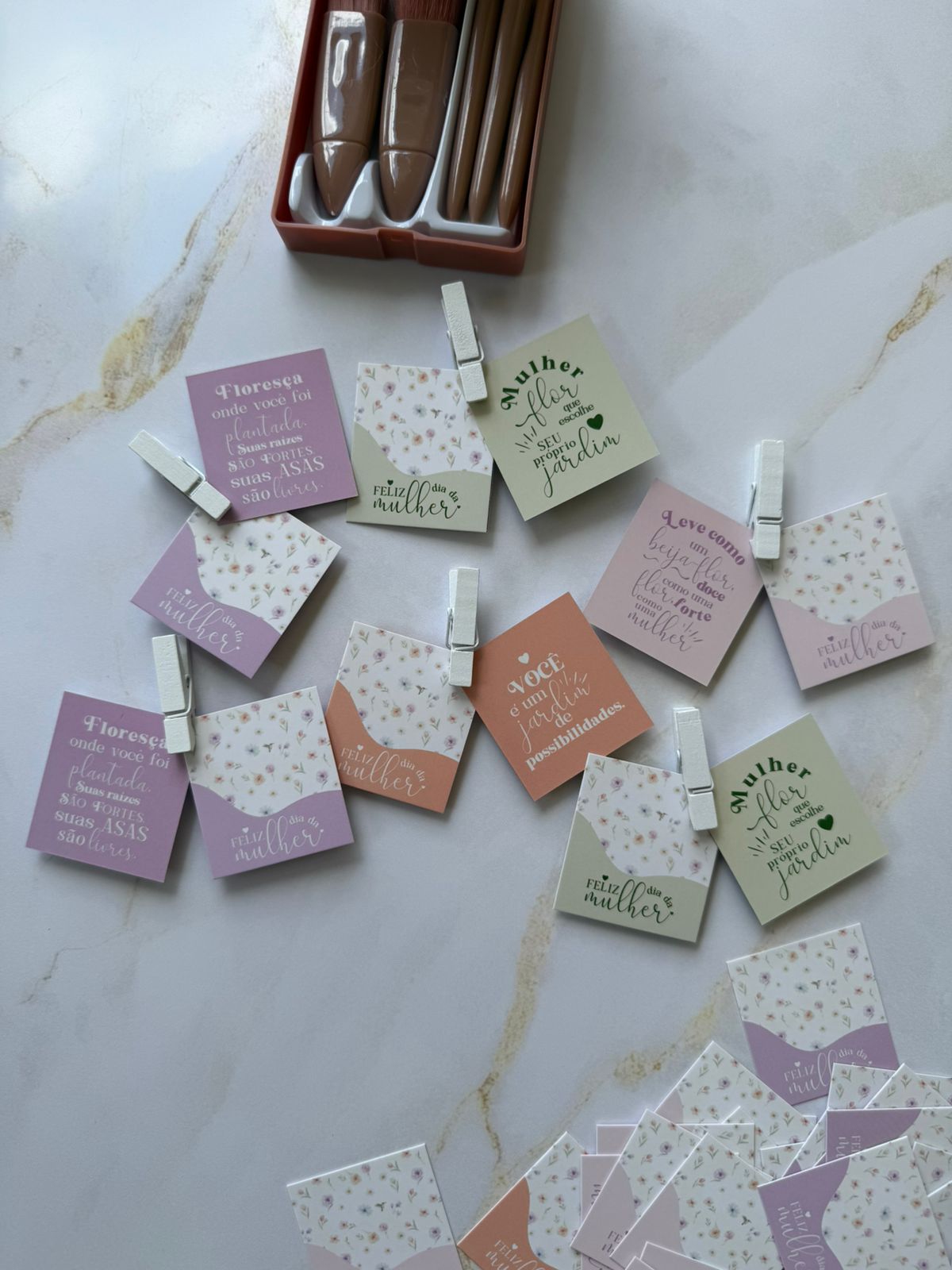 40 Mini cartões diversos em 4 cores. 10 unidades de cada.