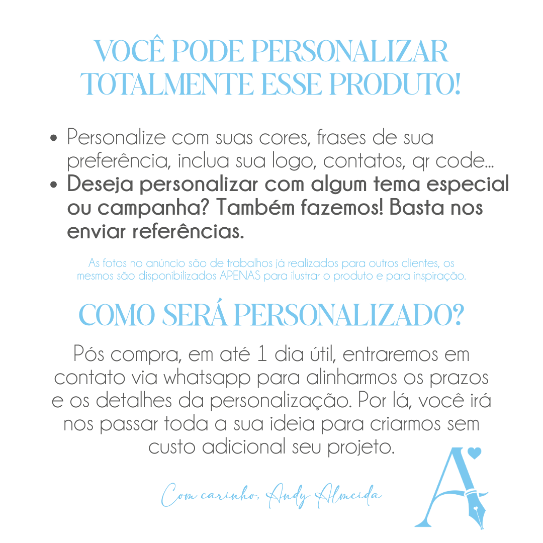 ATENÇÃO: As fotos no anúncio são de trabalhos já realizados para outros clientes, os mesmos são disponibilizados APENAS para ilustrar o produto e para inspiração.