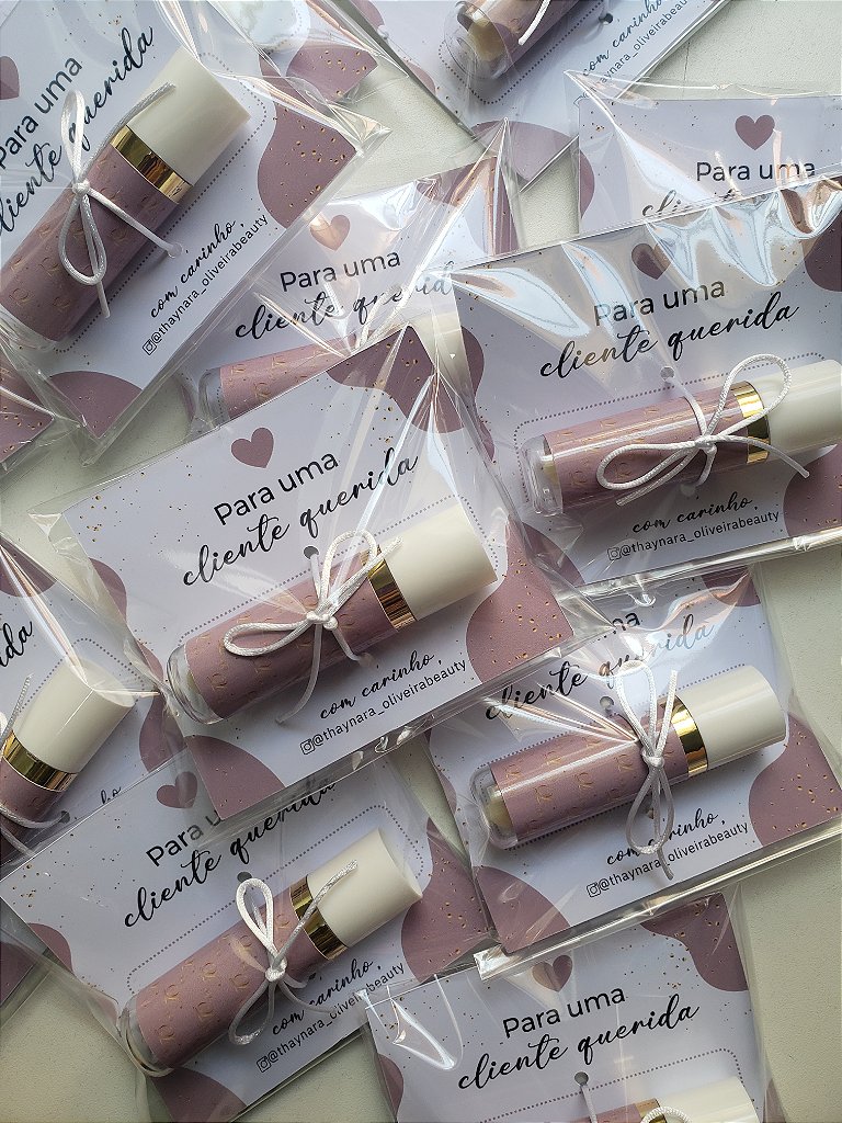 Material: Card em Glossy 230gr. Manteiga de cacau personalizada e embalados individualmente.