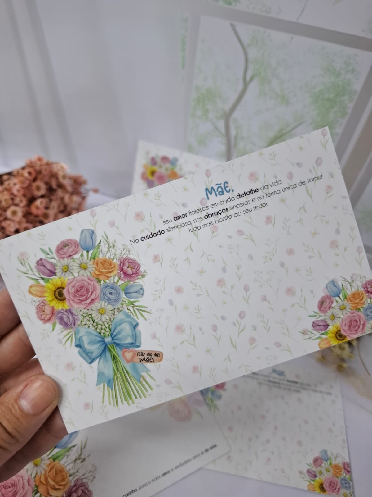 Postal em couchê 300gr com laminação fosca e verniz localizado frente e verso.