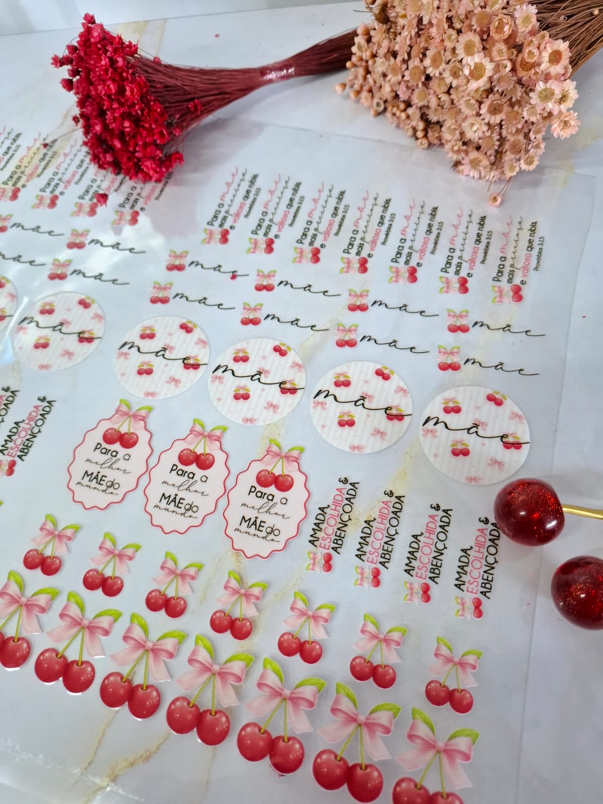 PRÉ VENDA - 2º LOTE Sem personalizar - 1 Folha Adesivo DTF UV - CEREJA MÃE - FULL